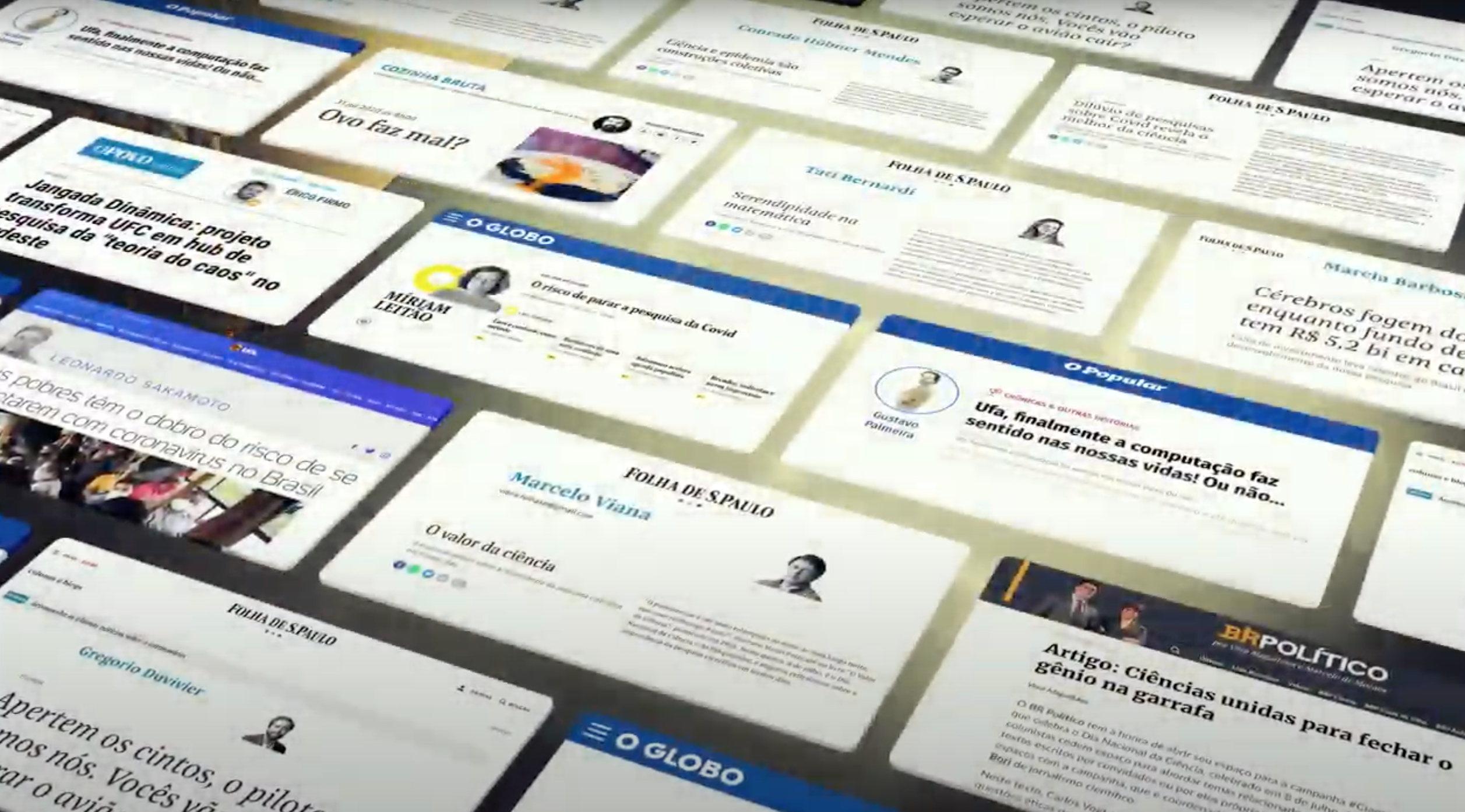 A Campanha #CientistaTrabalhando foi criada para debater Ciência em colunas de opinião. Colunistas cederam espaço para cientistas ou abordaram temas científicos. A Corcovado mapeou espaços nobres, convidou colunistas dos principais veículos e uniu jornalistas e pesquisadores. Em 28 dias, 60 colunas em 12 veículos! A # alcançou 35 milhões no Twitter e o 6º lugar nos TTs. Valoração: R$ 2,7 milhões.